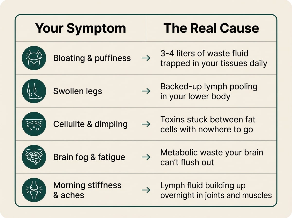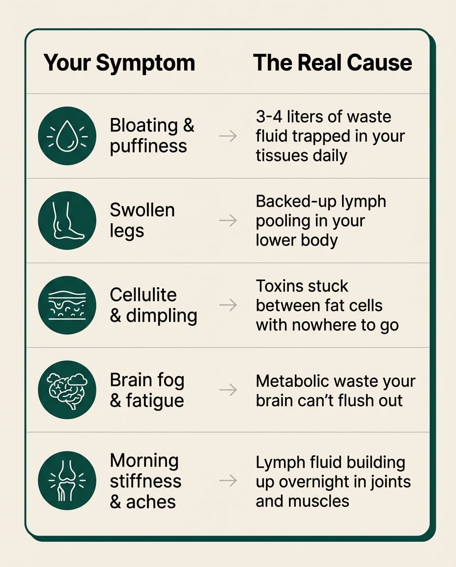 When your lymphatic system stops working, waste backs up in your tissues—triggering chronic fatigue, brain fog, bloating, joint pain, puffiness, and that frustrating feeling that something's just not right. Your cells are literally sitting in their own toxic buildup.