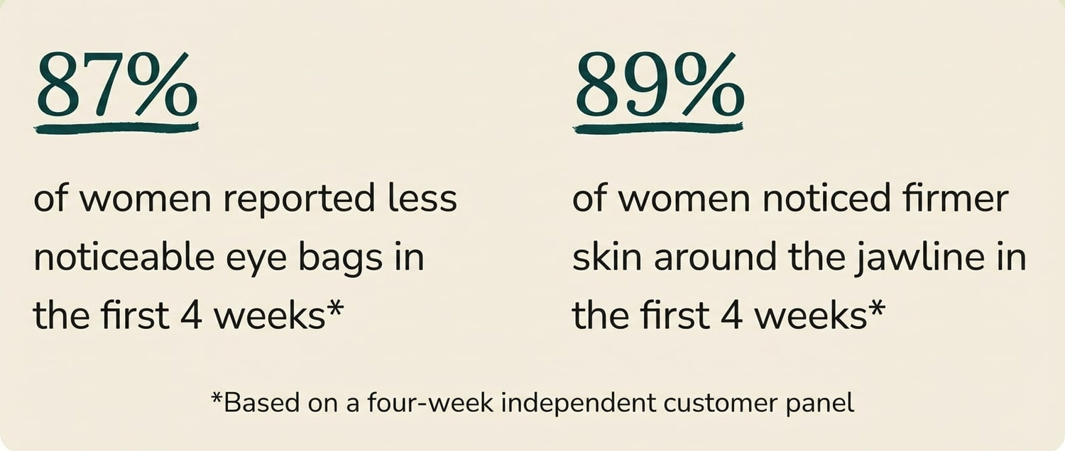 Most women notice something within the first week—feeling lighter, less bloated, morning puffiness fading faster. Visible changes happen by weeks 2-3. Transformation becomes undeniable by weeks 4-6. But true restoration takes time—we recommend 90 days for complete results.