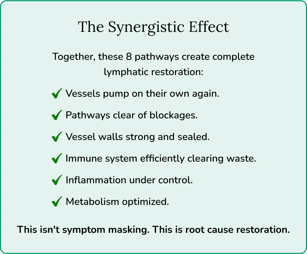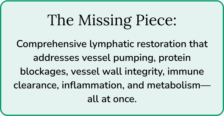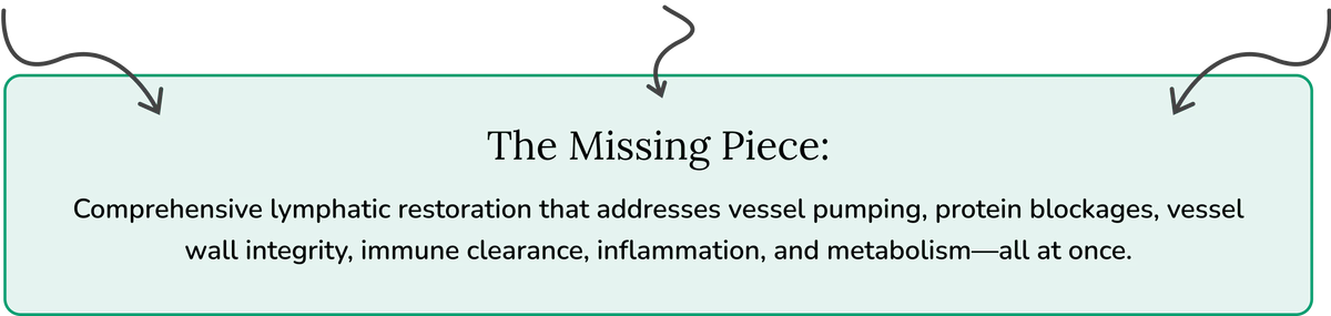 You deserve a solution that actually works. Not temporary relief. Not symptom masking. Complete lymphatic restoration.