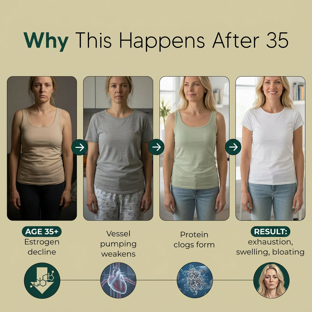 Your diet only addressed what goes INTO your system (inflammation from food). It didn't fix your body's broken ability to drain what's already there. That's why you could eat perfectly clean and still wake up bloated—the backed-up lymphatic waste was still pooling in your tissues.